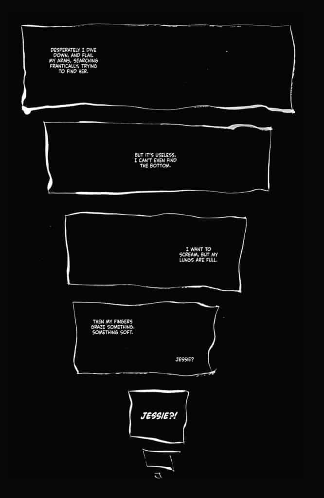 Stepping in on the art this time, Jeff’s pages and artwork are basic. Employing pure shadow and white lines to visualize the downward journey Bloodshot is taking through Deadside, it is a constant wonder at what is going on, with cues as to location and the surroundings only given by the dialogue. This is a twist of epic proportions thanks to Jeff taking on the artwork.
