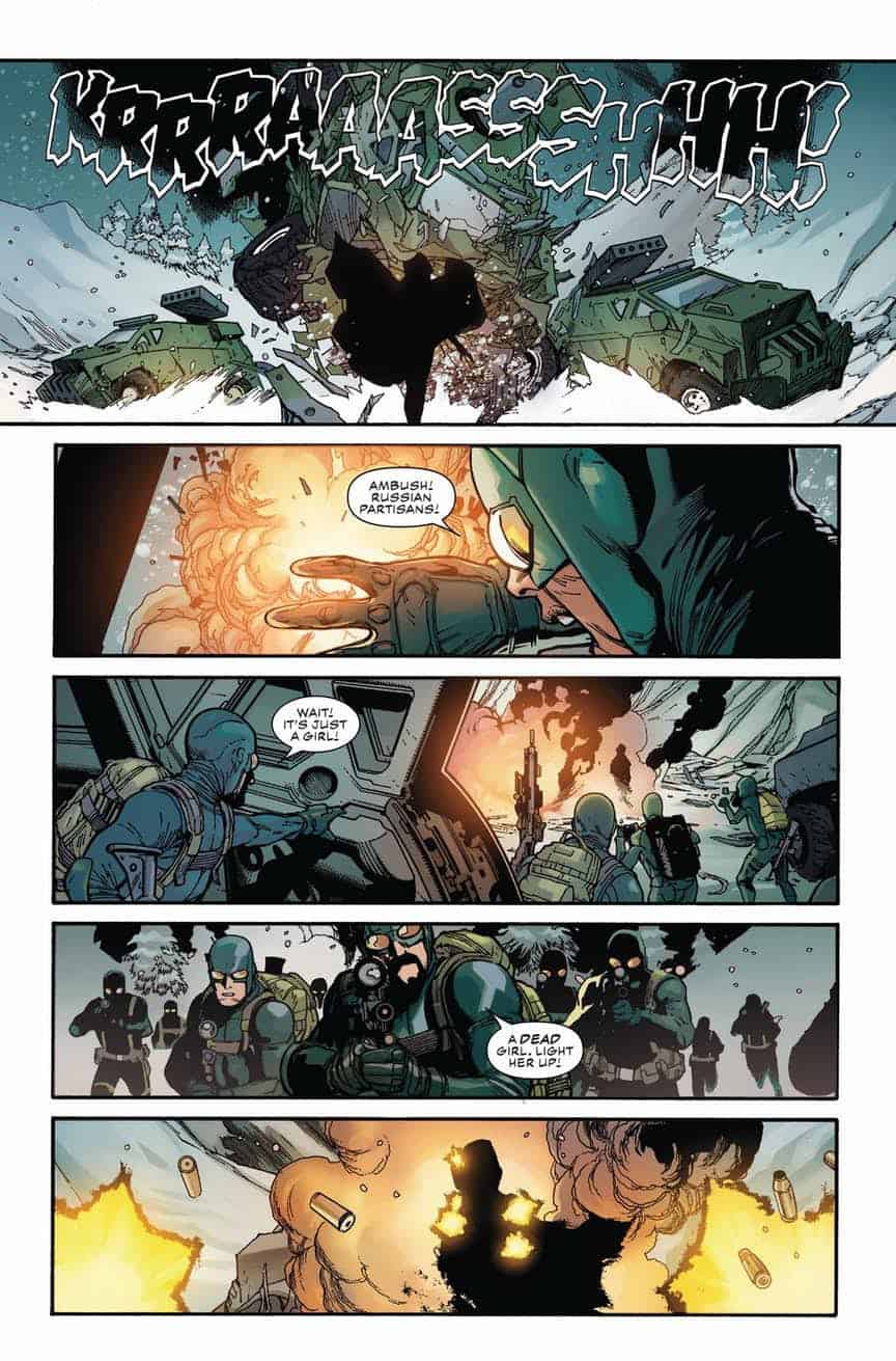Leinil’s artwork meshes amazingly with Ta-Nehisi’s script. There is a serious edge to it, befitting an out-of-the-gate Captain America #1 story. The design work for Cap, Sharon, the battles and settings, all are rendered beautifully. If this is a taste of what is to come, this reviewer can’t wait to see what Leinil comes up with next.