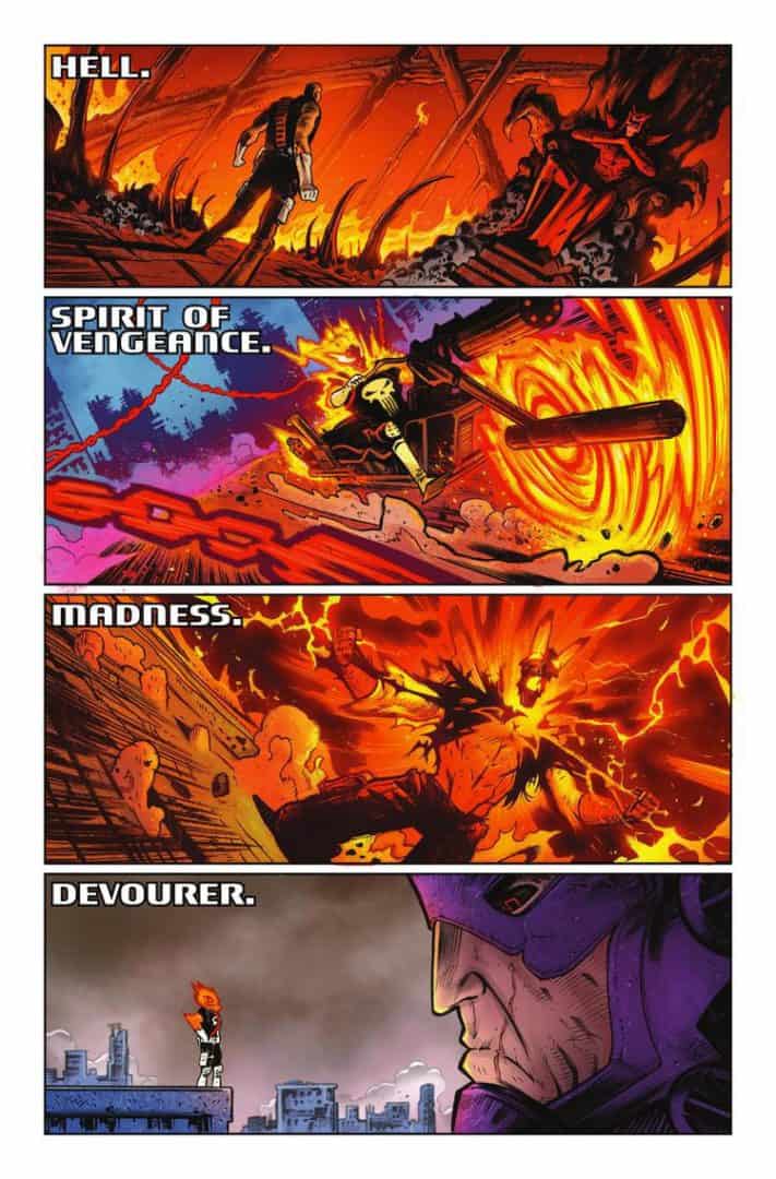 It could be a simple coincidence, but I hope not. I hope Cates looked at Punisher: Purgatory and said, “I can do better.” I love when writers dig into the annals of Marvel continuity and find hooks. Sort of how Thanos Wins almost screams of Marvel The End. Don’t get me wrong, both ideas are so different they can stand on their own but at the core they are all the same. Far future, Thanos wins, the Punisher dies, and he is reborn as the Spirit of Vengeance.