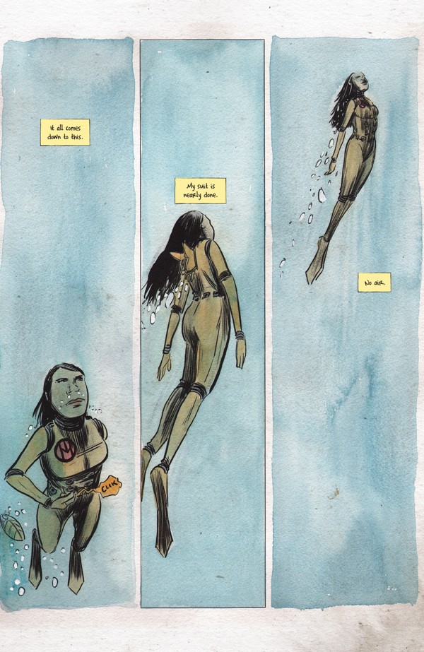 Sharlene’s colors, utterly amazing. So many details colored in, from things like Mia’s jumpsuit to her father’s uniform and cap to Hari’s beard and hair. It’s a smorgasbord of color, giving extra life to Matt’s artwork to make this one appealing comic for readers.