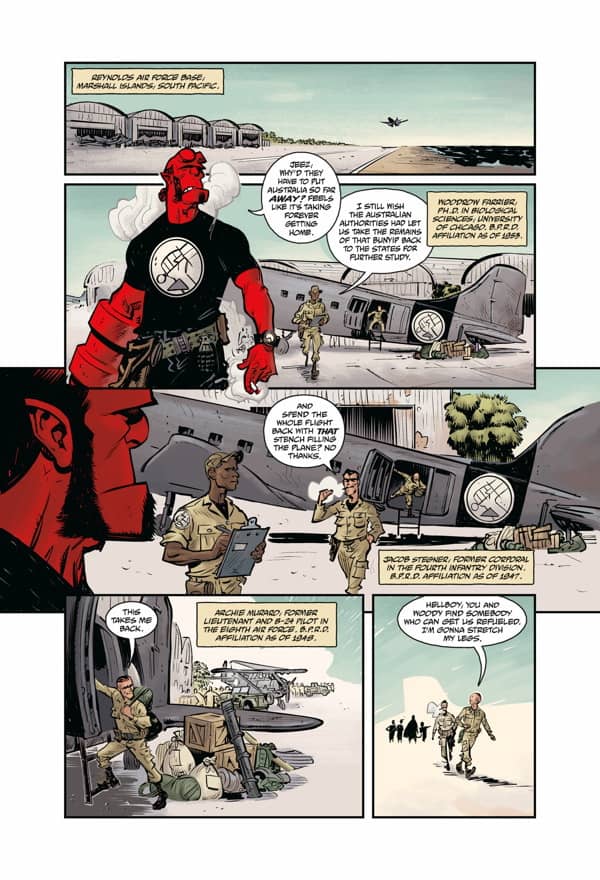Hellboy encounters unseen predators, strange cases of spontaneous combustion, and a weapon at an Air Force base that is more than it seems.