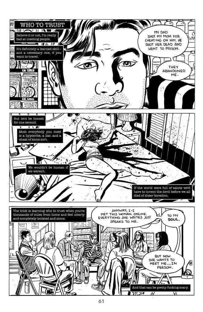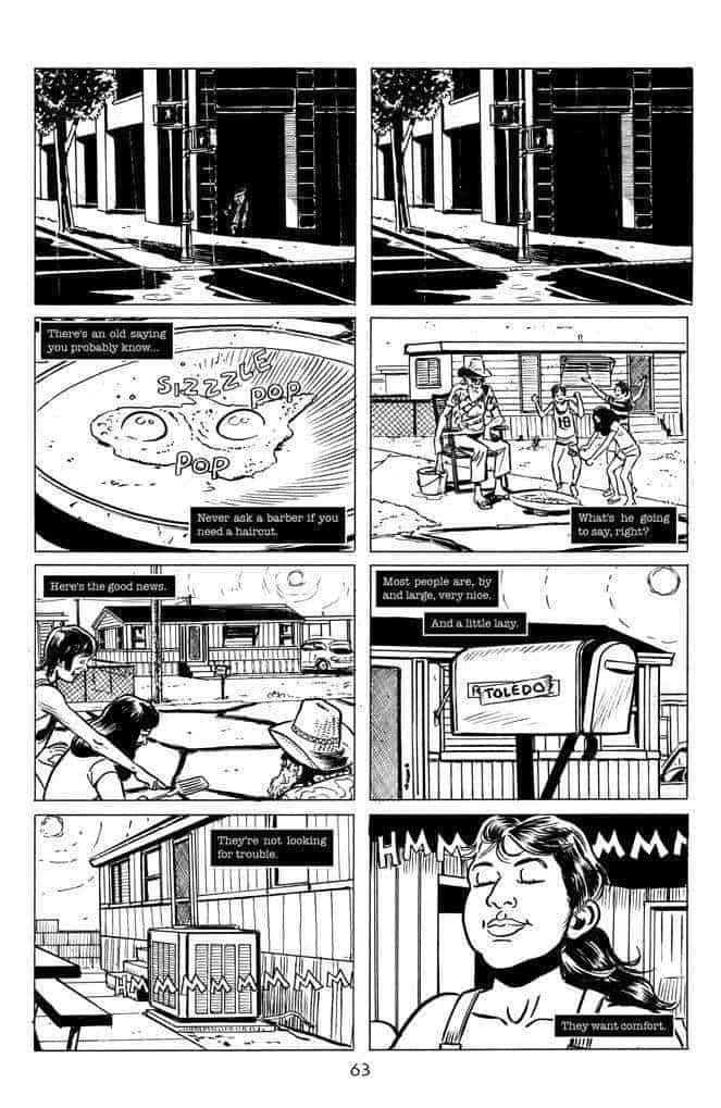 There’s a deep complexity to the storytelling, yet the story is tightly written. There’s no fat on it. It’s more brutal, bloody, violent, and uncompromising than Stray Bullets. Yet it feels authentic. As if it were a confession. There is so much truth and earnestness in the characters’ voices that you can hear the pain with which they speak. The coldness of their isolation. This is writing on another level. Fly on the wall stuff. A peek under the invisible veil of seemingly normal folk forever being scarred by what you learn.