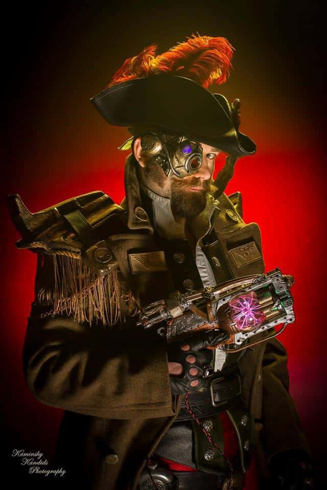 Tim Harrison: I’ve been a tinkerer all my life and after college, I hadn’t really done too much. I’m not sure why, but one year I decided I wanted to do a steampunk costume for my girlfriend at the time and myself and build some side arm props. Well, that was the beginning of the end. I started making the props in August 2012. My two heavily modified Nerf maverick pistols, power packs, and battery meter were the first props I had made. They included paint, electrical work, and some custom fabrication. From there I was hooked. I had missed creating and dove in to see what else the steampunk world had to offer. For a few years, I was doing explicitly steampunk conventions and props. I then decided to branch out and do my own adaptation of the Final Fantasy Black Mage. A few friends joined me as White mage and Red mage and we went to a steampunk convention with them. The following year, I was looking to get to some other conventions and decided to enter the Crown Championship of Cosplay at C2E2 2016. I thought it would be a great time and I’d never done a big competition before. I revamped some things on the costume. Made a new waist belt from scratch and also a full staff to replace the cane I had modded. I ended up placing in the contest and [that] got me hooked in the regular cosplay scene. It’s a great community and has opened me up to meeting so many new and fantastic people.