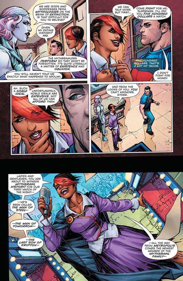 Superman… is down in Oakland but it sure feels like Mexico… no lie… fighting metahuman Lucha Libre wrestlers for money and Tacos… seriously no lie! MONEY & TACOS… and apparently Big Blue is cheap, he’ll fight in the ring for 500 dollars USD! They even gave him a cape!