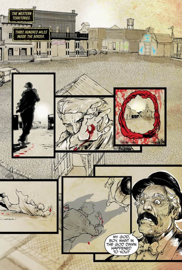 Garrett Gunn’s choice of words and delivery really stand out in this series. There’s no fluff. It’s everything you want and need to know without excess, and conveyed in a way that is ideal for this setting. The characters he’s produced so far are so dynamic and well-defined, it’s almost as if Gunn is putting personal experience or acquaintances into the story. Not that he simply created them for GO WEST, but rather he knows them intimately (not in the dirty way, perverts). Garrett’s writing often makes bold choices but each one has been executed to perfection. I don’t really know what else I can say and remain spoiler-free, but know that what he has giving readers thus far has been at a veteran comic book writer’s level. He doesn’t just write and enjoyable story, he engages the reader and takes them along the journey of revenge. Not an east task to convey in a comic book.