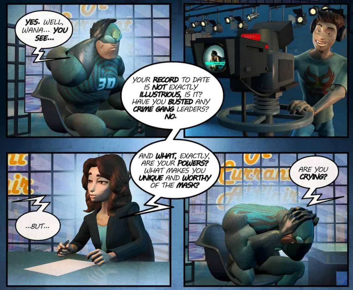 Writer Andrez Bergen and artist Frantz Kantor have collaborated for a new series entitled Magpie. Published by Comicoz, issue #1 is set to debut in the pages of Australian national comic magazine Oi Oi Oi! issue #7 on January 31, 2016. The 8-page installment has some visually stunning artwork. The series follows 3D Man, a color blind Australian superhero with poor depth perception, who has become mocked and ridiculed by the residents of the city. Even the two superhero groups of which he was affiliated had booted him… by mail no less. As he struggles to regain his glory and confidence, 3D Man realizes he has to take a different approach in order to be respected again. All of this while he seeks to confront the mysterious Magpie. Here’s just a peek at a couple of pages for you to gain an idea of the story and art you can expect from these talented creators.
