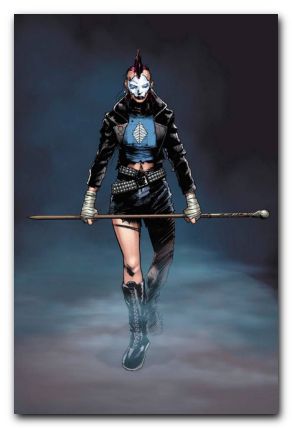 The issue begins with MI-6’s Ninjak and Punk Mambo, a mystic, stranded on a deserted island in Deadside, an alternate dimension controlled by the dead. The two were paired because Mambo’s prior visit to Deadside, and knowledge of the surroundings, would be advantageous for our protagonist. Both, along with a magical Loa named Aye, head for higher grounds in attempt to better survey the land and continue their mission. Unbeknownst to them, they are being watched by an enigmatic entity.