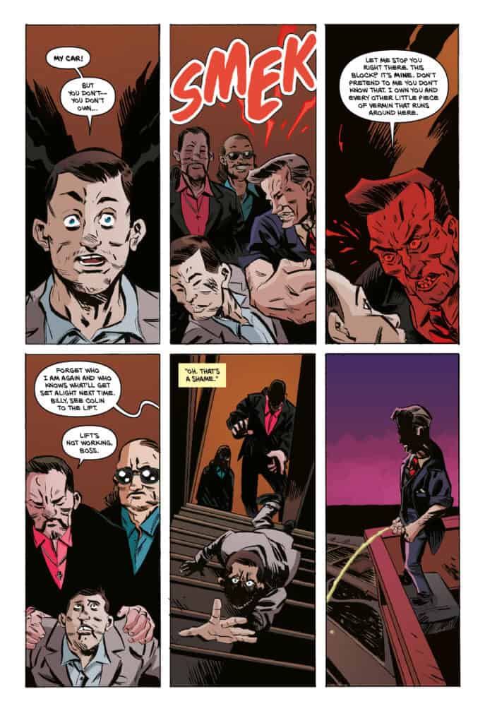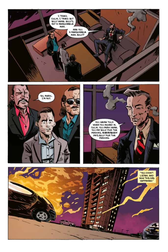 Shared and made available at 2015’s Thought Bubble, Leeds, England’s annual Comic Art Festival, the self-published comic was a hit and sold out of its initial run. Writer Fraser Campbell tells the story of Mal Gillis, and aging, struggling man trying to feel useful and coping with the death of his child. It is almost sad seeing Malcolm “the Mondo Monster” dress as a superhero to hawk fliers for a comic books store, helping an elderly tenant with chores, and sulking in a bar. But Mal is relatable and a character to which readers can connect.