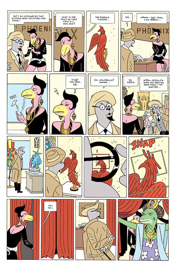 Rich Tommaso’s writing style for this series keeps on being a surprise. He takes cues from all the best aspects of classic Cold War spy and espionage stories, but produces a comic that is entirely original. There is no stealing of ideas in this second issue. Instead, the plot gets thick as Malcolm continues in his new job as a secret agent.