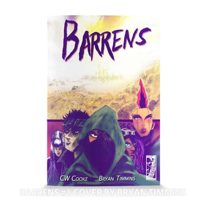 Barrens is created by Erin Lei, CW Cooke, Bryan Timmins, and Iggy Michniacki, and is the first original series from Project-Nerd Publishing. Bryan Timmins (ART, COLORS): Bryan is a Freelance Illustrator and Animator. He’s had lifelong interests in comics, animation, music, movies, and motorcycles. His work can be seen in comics, commercials, animated series, and Major League Sports stadiums. He lives outside Kansas City with his wife and 2 children. CW Cooke (WORDS, LETTERS): CW is a writer who has been working in comics since 2007.