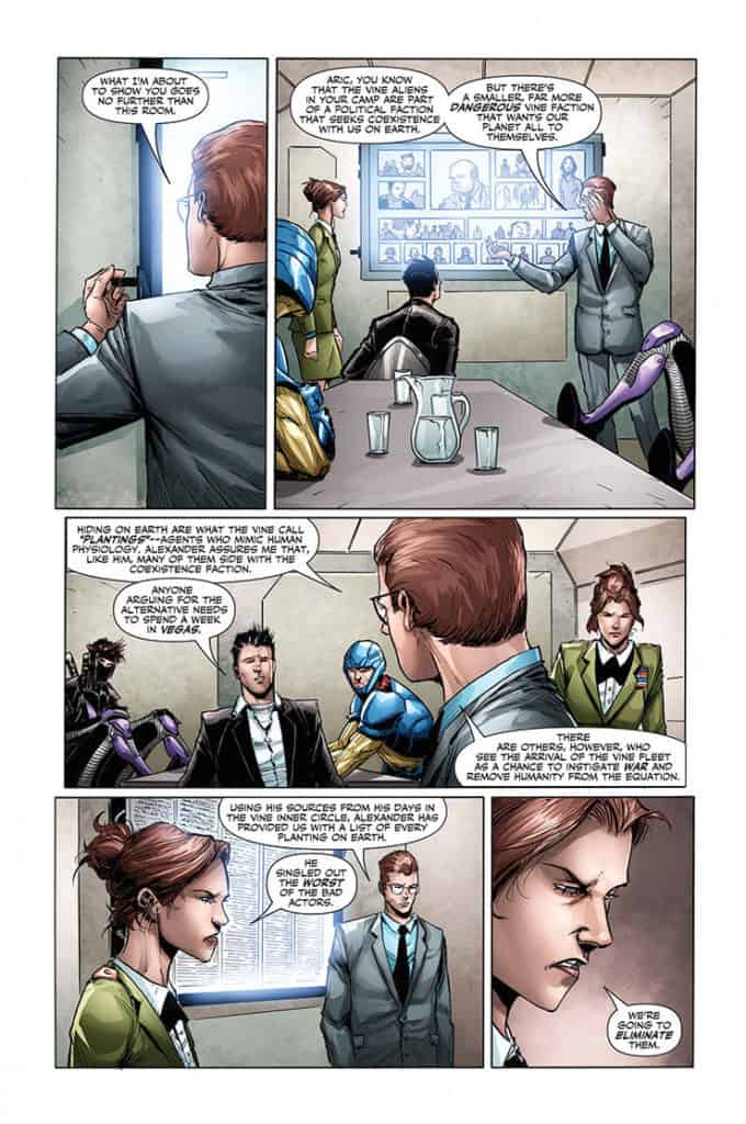 With two kingdoms now under his command, Aric of Dacia has pledged loyalty to his adopted nation – the United States of America – and now… America has given him a new mission: destroy the Vine’s network of humanoid alien agents once and for all. To do it, he’ll have to turn to the one man among us he can trust…his own former enemy, the deadly MI-6 operative called Ninjak!