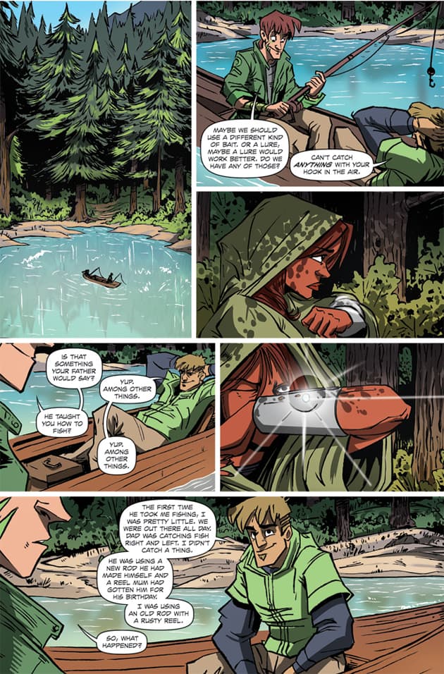 Brian was gracious enough to give me a copy of issue one and two of his series. I brought them home to read and publish a review of each, but I got more than I expected. The sci-fi/fantasy story is enthralling and unique, while the artwork blew me away. Brian’s detail and style leave your eyes stuck on each panel instead of hurrying to the next one to continue reading. His characters are visual eye candy and his use of colors and shading are, quite frankly, perfect. Hess and Beneville have a winning combination where each person’s talent accentuates and compliments the other.