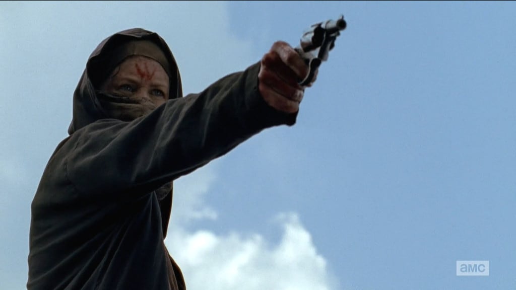 To me, Carol is the most badass in the group now! Forget Rick, forget Daryl, Morgan and even Michonne! Carol breaks out of her homemaker cover to do what she does best and what that is isn’t always pretty. Not missing a beat, Carol is off to save who she can, but The Wolves are just too quick, killing too fast, wounding their prey viciously. This leaves Carol having to kill a fellow Alexandren who was mortally wounded, it’s so much craziness going on, Carol has to take a moment.
