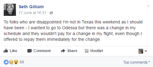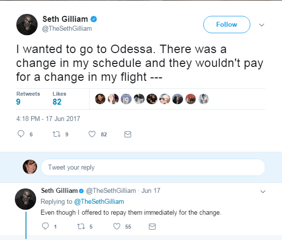 Now according to Seth he wanted to go but, “They wouldn’t pay for a change in my flight.” According to Titan, they tried to accommodate, but it didn’t work out.