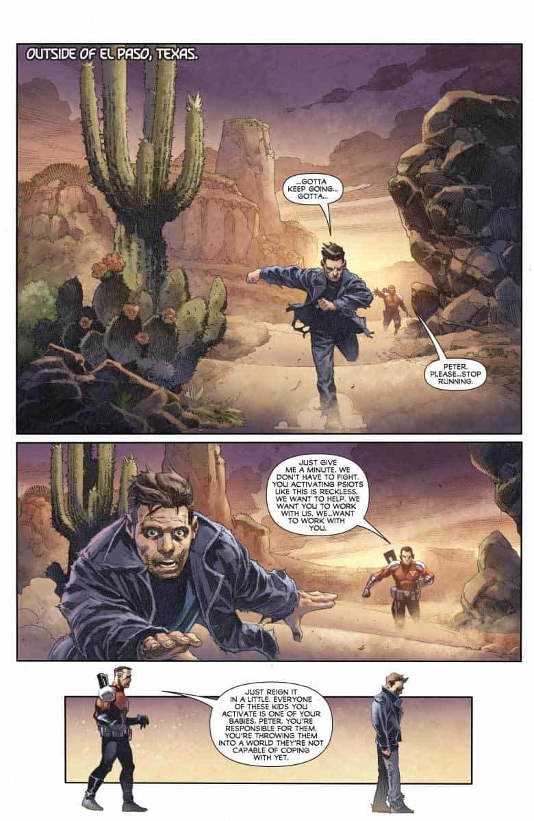 In the East, one of the most powerful minds on Earth, Peter Stanchek, is leading his band of Renegades across the country, activating any potential psiots willing to join them, and building an insurrection force of ultra-powerful and unwieldy new abilities that will soon bring war to Omen’s doorstep…and the unstoppable force known as X-O Manowar raging back to Earth…